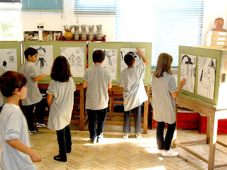 O exercício foi realizado tendo como base imagens de desenhos. Pretendeu-se que os desenhos realizados fossem expressivos fomentando a análise e interpretação das formas.